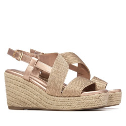 Sandalia de mujer, de la marca Xti. Fabricada en textil con un atractivo acabado metalizado que aporta un toque de brillo y sofisticación al look. Presenta un diseño moderno con pala y tira ancha cruzada que se adapta cómodamente al pie. La cuña con plataforma, confeccionada en yute natural, añade altura y estilo sin renunciar a la comodidad. Ideal para lucir en los días de buen tiempo con un aire fresco y actual. Este modelo ha obtenido el certificado vegano por la organización mundial PETA (Organización de los derechos de los animales).