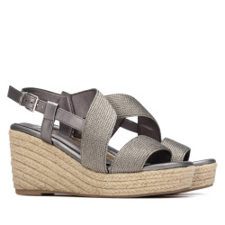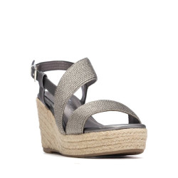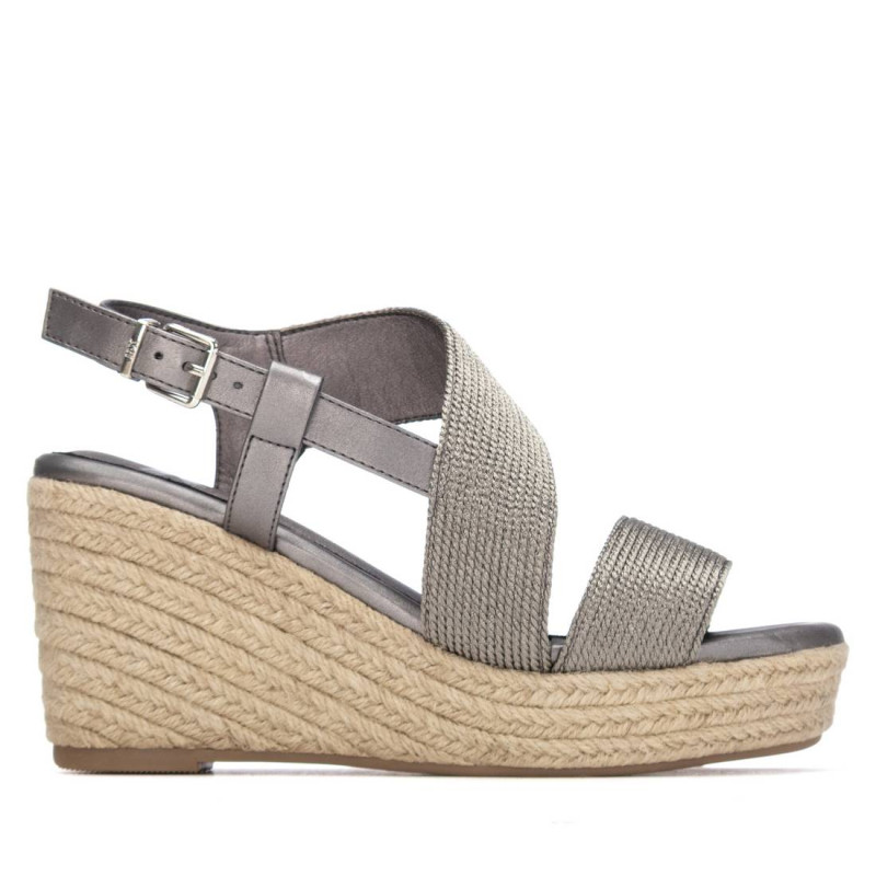 Sandalia de mujer, de la marca Xti. Fabricada en textil con un atractivo acabado metalizado que aporta un toque de brillo y sofisticación al look. Presenta un diseño moderno con pala y tira ancha cruzada que se adapta cómodamente al pie. La cuña con plataforma, confeccionada en yute natural, añade altura y estilo sin renunciar a la comodidad. Ideal para lucir en los días de buen tiempo con un aire fresco y actual. Este modelo ha obtenido el certificado vegano por la organización mundial PETA (Organización de los derechos de los animales).
