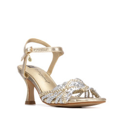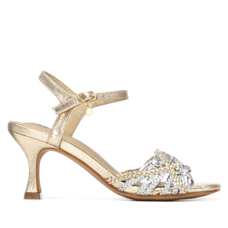 Sandalia de mujer, de la marca Xti. Fabricada en material que imita la piel con efecto metalizado, destaca por su bonito diseño de pala trenzada que aporta textura y estilo. Cuenta con una pulsera que sujeta el tobillo mediante hebilla, ofreciendo un ajuste seguro y cómodo. Tacón fino de 7 cm de altura que añade elegancia y sofisticación, ideal para completar looks formales o de ocasión. Este modelo ha obtenido el certificado vegano por la organización mundial PETA (Organización de los derechos de los animales).