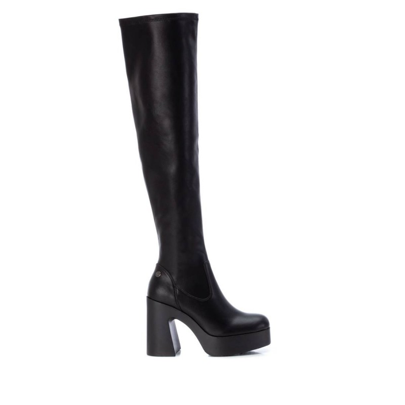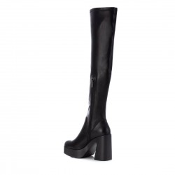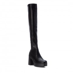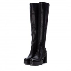 Bota XXL de mujer, de la marca Refresh. Fabricada en material que imita la piel. Cierre mediante cremallera lateral. Caña elástica de 51 cm. Tacón ancho de 11 cmc con plataforma de 3,5 cm para mayor comodidad. Suela antideslizante. Este modelo ha obtenido el certificado vegano por la organización mundial PETA (Organización de los derechos de los animales).