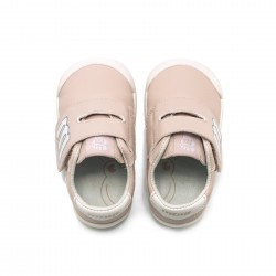 Zapatilla deportiva Free mtng para bebes, su diseño es en piel sintética de color nude con tira adhesiva en el empeine y detalle de la inicial de color blanco. Diseñada y desarrollada especialmente en colaboración con el Dr. Juanjo López, traumatólogo deportivo e infantil, para respetar el desarrollo natural del pie de la niña. Gracias a su puntera ancha permite el libre movimiento de los dedos dentro del zapato. Su suela tiene 3 mm de grosor y con zero drop (totalmente plana) respeta el natural desarrollo del pie del pequeño y sus elementos flexibles y torsionables hace que el pie del niño no esté encorsetado por la estructura del zapato. Las plantillas extraíbles y las marcas de los dedos en la misma, facilita comprobar si la talla del calzado es la correcta para tu hijo. Además, su fácil apertura facilita que el niño pueda descalzarse y calzarse de forma autónoma. Acompaña los primeros pasos de tu bebé con mtng.