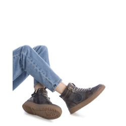 Botín deportivo de mujer, de la marca Carmela. Fabricado en piel de alta calidad. Cierre mediante cremallera lateral y cordones ajustables. Suela de goma antideslizante, para elevar tus looks de invierno. Con plantilla extraíble.