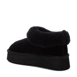 Botín de mujer, de la marca Carmela. Fabricado en un suave serraje. Supercalentito con pelo en el interior. Estilo bota australiana, un básico de cada invierno. No querrás quitártela. Suela gruesa de goma antideslizante.