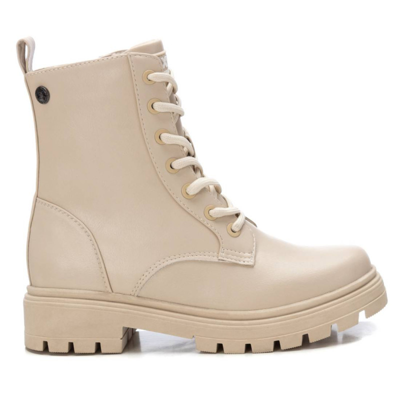 Botín de niña, de la marca Xti Kids. Fabricado en material que imita a la piel. Cierre mediante cremallera interior. Con cordones regulables al tono para un mejor ajuste. Tirador trasero para facilitar la puesta. Gruesa suela de goma antideslizante. Este modelo ha obtenido el certificado vegano por la organización mundial PETA (Organización de los derechos de los animales).