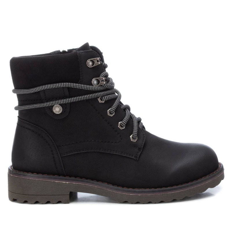 Botín de mujer, de la marca Refresh. Fabricado en un material que imita la piel. Cierre mediante cremallera lateral y cordones para un buen ajuste. Suela track de goma antideslizante. Modelo atemporal, el cual le da un toque casual a tu look. Este modelo ha obtenido el certificado vegano por la organización mundial PETA (Organización de los derechos de los animales).