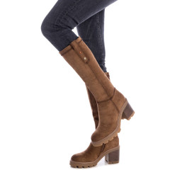 Bota de mujer, de la marca Refresh. Fabricado en una suave antelina. Caña 35 cm. Cierre mediante cremallera lateral. Suela track antideslizante con un tacón de 8 cm y plataforma para mayor comodidad. Este modelo ha obtenido el certificado vegano por la organización mundial PETA (Organización de los derechos de los animales).