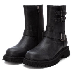 Botín de mujer, de la marca Refresh. Fabricado en un material que imita la piel. Cierre mediante cremallera lateral. Correas con hebillas decorativas. Suela de goma antideslizante. Este modelo ha obtenido el certificado vegano por la organización mundial PETA (Organización de los derechos de los animales).