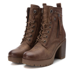 Botín de mujer, de la marca Refresh. Fabricado en material que imita la piel. Cierre mediante cremallera y cordones ajustables. Cremallera lateral decorativa. Tacón 9 cm con plataforma delantera para mayor comodidad. Este modelo ha obtenido el certificado vegano por la organización mundial PETA (Organización de los derechos de los animales).