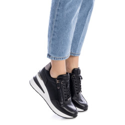 Zapatilla de mujer, de la marca Xti. Fabricado en material que imita la piel. Con cierre cremallera lateral y cordones ajustables para mayor comodidad y buen ajuste. Cómoda cuña de 6 cm con suela de goma dentada antideslizante. Con plantilla extraíble. Este modelo ha obtenido el certificado vegano por la organización mundial PETA (Organización de los derechos de los animales).