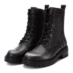 Botín de mujer, de la marca Xti. Fabricado en un material que imita la piel. Cierre con cremallera lateral y cordones para un mayor ajuste. Tirador trasero para facilitar la puesta. Suela track de goma antideslizante. Este modelo ha obtenido el certificado vegano por la organización mundial PETA (Organización de los derechos de los animales).