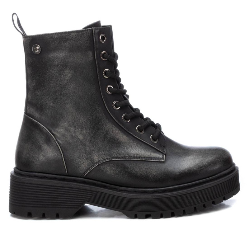 Botín militar de mujer, de la marca Xti. Fabricado en material que imita la piel. Cierre mediante cremallera lateral y cordoneras para un buen ajuste. Tirador trasero para facilitar la puesta. Suela track de goma antideslizante. Modelo en tendencia de esta temporada. Este modelo ha obtenido el certificado vegano por la organización mundial PETA (Organización de los derechos de los animales).