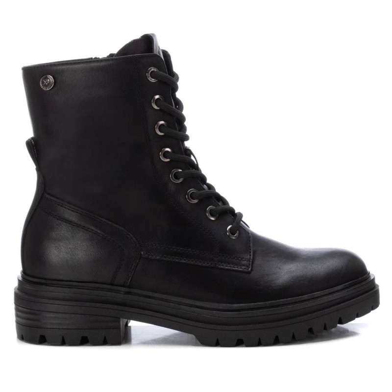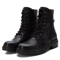 Botín de mujer, de la marca Xti. Fabricado en un material que imita la piel. Cierre lateral mediante cremallera y cordones ajustables para mayor comodidad. Suela dentada, gruesa y antideslizante. Este modelo ha obtenido el certificado vegano por la organización mundial PETA (Organización de los derechos de los animales).