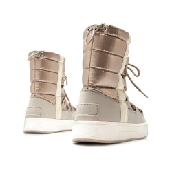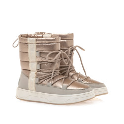 Botín dorado Nepal para mujer de Mtng. Para los días de lluvia o nieve. Destaca gracias a su cómodo acabado acolchado en color oro champagne. Cierre de cordones para una puesta a medida. Suela gruesa. Perfectas para combinar en los días más fríos.