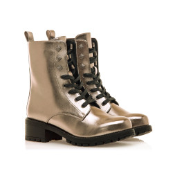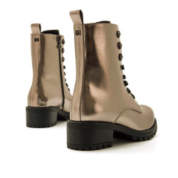 Botín New Altea Mariamare para mujer, diseñado en un deslumbrante color bronce con cierre de cordones de color negro. Destaca gracias a su cómodo tacón cuadrado y horma redondeada. Tirador en la parte superior de la caña para una puesta más fácil. Cierre de cremallera interior en el lateral de la caña. Un modelo ideal para dar un toque de personalidad a tu look.