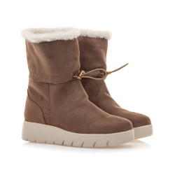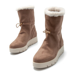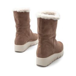 Botín Burano Mariamare para mujer, tiene diseño de estilo invernal con forro de pelo sintético en el interior. Diseñado en color marrón con piso de cuña en color beige. Un modelo Mariamare cómodo para tu día a día e ideal para conjuntar con cualquier look.