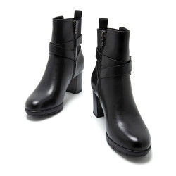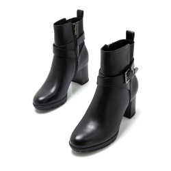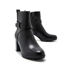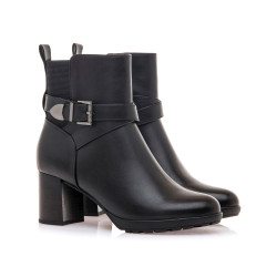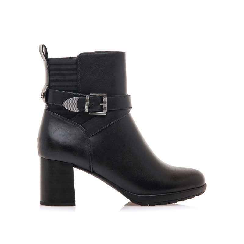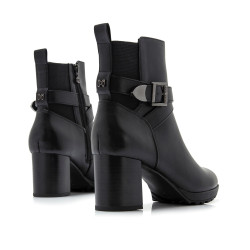Botín Polino Mariamare para chica. Diseñado en color negro, destaca gracias a su cómodo tacón cuadrado y horma en almendrada. Como detalle incluye unas tiras con cierre de hebilla plateada en la caña. Cierre de cremallera interior en el lateral de la caña. Un modelo original para llevar en tu día a día esta temporada.