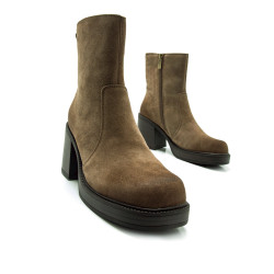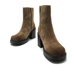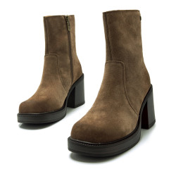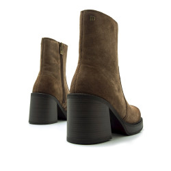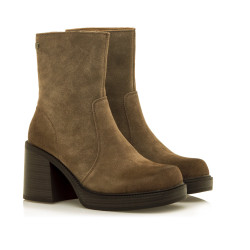 Botín New Oasis mtng para mujer. Diseñado en piel de serraje de color marrón tierra, está inspirada en el estilo de los setenta. Tiene cómodo tacón cuadrado y plataforma. Cierre de cremallera interior en la parte lateral de la bota. Un modelo ideal para dar un toque de personalidad mtng a tu look.