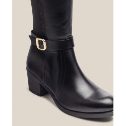 La bota de tacón LILLE 015 en negro es una elegante bota de caña alta que combina estilo y funcionalidad. Su diseño presenta un elástico lateral que asegura un ajuste cómodo y adaptable a diferentes formas de pierna. La hebilla decorativa añade un toque moderno al diseño de la misma, que ofrece una mezcla ideal de confort y estilo, siendo una elección versátil para cualquier ocasión. Elaborada artesanalmente en España con material piel y tintes vegetales respetuosos con el medio ambiente.