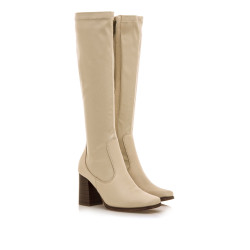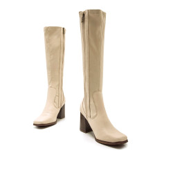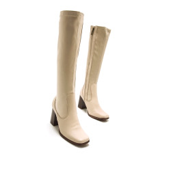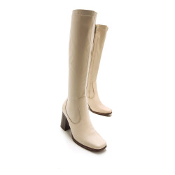 Bota alta Porto mtng para chica. Diseñada en color blanco hielo, destaca gracias a su cómodo tacón cuadrado de efecto madera y su caña estilo stretch. Cierre de cremallera interior en el lateral de la bota. Un modelo cómodo e ideal para dar un toque de color a tu look.