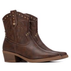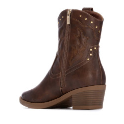 Botín de mujer, de la marca Xti Basic. Fabricado en material que imita la piel, con un diseño estilo cowboy y una caña de 15 cm de altura. Detalles de pequeñas tachas doradas que añaden un toque único y elegante. Con tacón bajo de 5 cm y suela antideslizante para mayor comodidad y seguridad al caminar. Ideal para un look con estilo y personalidad. Este modelo ha obtenido el certificado vegano por la organización mundial PETA (Organización de los derechos de los animales).