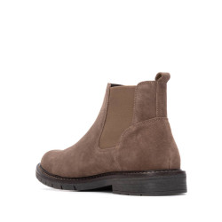 Botín de mujer, de la marca Carmela. Fabricado en un suave serraje. Cierre lateral mediante chelsea. Tirador trasero para facilitar la puesta. Suelo de goma antideslizante.