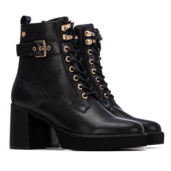 Botín de mujer, de la marca Carmela. Fabricado en piel de alta calidad. Cierre mediante cremallera y cordones ajustables. Decorado lateral con hebilla. Tirador trasero para facilitar la puesta. Suela de goma antideslizante. Plantilla extraíble
