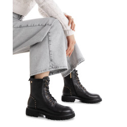Botín de mujer, de la marca Carmela. Fabricado en piel de alta calidad. Cierre mediante cremallera interna y cordones ajustables. Detalles en el talón de tachas metalizadas. Tirador trasero para facilitar la puesta. Suela de goma antideslizante. Plantilla extraíble