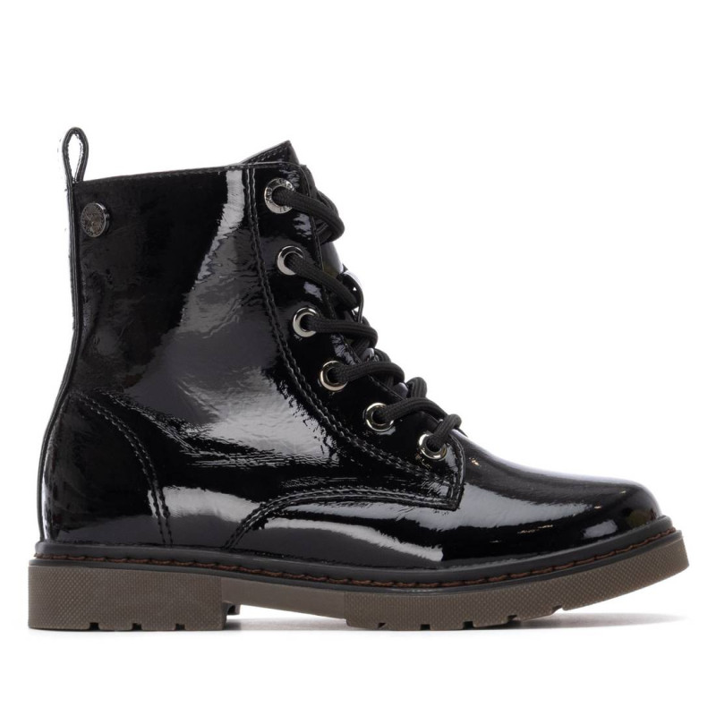Botín de niña Xti, confeccionado en material charol con un diseño sencillo y elegante. Cuenta con cierre de cremallera para un ajuste cómodo y rápido. Un calzado versátil y moderno, perfecto para aportar estilo a los looks de las más pequeñas en cualquier ocasión. Con suela antideslizante. Este modelo ha obtenido el certificado vegano por la organización mundial PETA (Organización de los derechos de los animales).