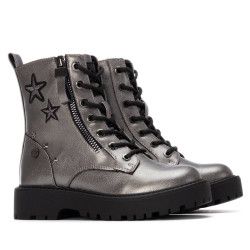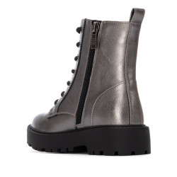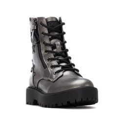 Botín estilo militar de niña, de la marca Xti Kids. Fabricado en material sintético resistente y fácil de limpiar. Cuenta con cordones frontales y cremallera frontal lateral que facilita el calce. Presenta estrellitas decorativas en el lateral que aportan un toque divertido y original al diseño. Suela de goma que ofrece buen agarre y confort. Perfecto para un look urbano con estilo y personalidad. Este modelo ha obtenido el certificado vegano por la organización mundial PETA (Organización de los derechos de los animales).