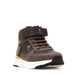 Botín de niño, de la marca Xti Kids. Fabricado en material sintético resistente y fácil de limpiar. Cuenta con cierre de cordones y una tira de velcro en la parte superior de las cordoneras para un ajuste más seguro y cómodo. Suela estilo deportiva que proporciona amortiguación y buen agarre. Ideal para el día a día con un estilo práctico y moderno. Este modelo ha obtenido el certificado vegano por la organización mundial PETA (Organización de los derechos de los animales).