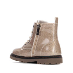 Botín estilo militar de niña, de la marca Xti Kids. Fabricado en charol glitter, que aporta un brillo intenso y llamativo. Cuenta con una decoración lateral en forma de alpaca de animal, que añade un toque original y moderno al diseño. Suela de goma resistente que garantiza comodidad y buen agarre. Perfecto para un look con personalidad y estilo.