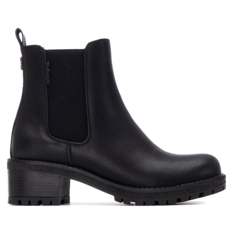 Botín de mujer, de la marca Refresh. Fabricada en material que imita a la piel. Botín tipo chelsea con cremallera interior. Tirador trasero para facilitar el calce. Suela de goma antideslizante. Con plantilla extraíble. Este modelo ha obtenido el certificado vegano por la organización mundial PETA (Organización de los derechos de los animales).