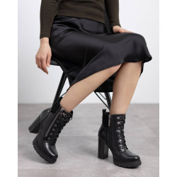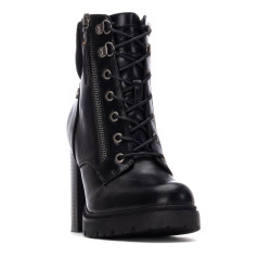 Botín de mujer, de la marca Refresh. Fabricado en un material que imita la piel. Collarín textil para más comodidad. Cierre mediante cremallera interior y cordones para un buen ajuste. Tirador trasero para facilitar la puesta. Tacón 10 cm con plataforma antideslizante para mayor comodidad. Este modelo ha obtenido el certificado vegano por la organización mundial PETA (Organización de los derechos de los animales).