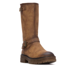 Bota de mujer, de la marca Refresh. Fabricada en material que imita a la piel. Cierre mediante cremallera interior. Bota estilo motorista perfecta para los mejores looks de la temporada. Caña de 24 cm. Con gruesa suela de goma antideslizante. Con plantilla extraíble. Este modelo ha obtenido el certificado vegano por la organización mundial PETA (Organización de los derechos de los animales).