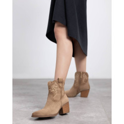 Bota de mujer, de la marca Refresh. Fabricado en suave antelina. Cierre mediante cremallera interior. Bordado en la caña estilo cowboy. Tiradores laterales para facilitar la puesta. Suela antideslizante y tacón ancho. Con plantilla extraíble. Modelo en tendencia, no puede faltar en tu armario esta temporada. Este modelo ha obtenido el certificado vegano por la organización mundial PETA (Organización de los derechos de los animales).