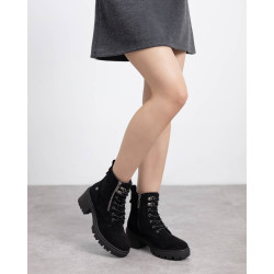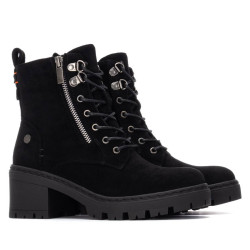 Botín de mujer, de la marca Refresh. Fabricado en una suave antelina. Cremallera lateral decorativa. Cierre mediante cremallera interior con cordones regulables. Tirador trasero para facilitar el calce. Suela track antideslizante con tacón y plataforma para mayor comodidad. Con plantilla extraíble. Este modelo ha obtenido el certificado vegano por la organización mundial PETA (Organización de los derechos de los animales).
