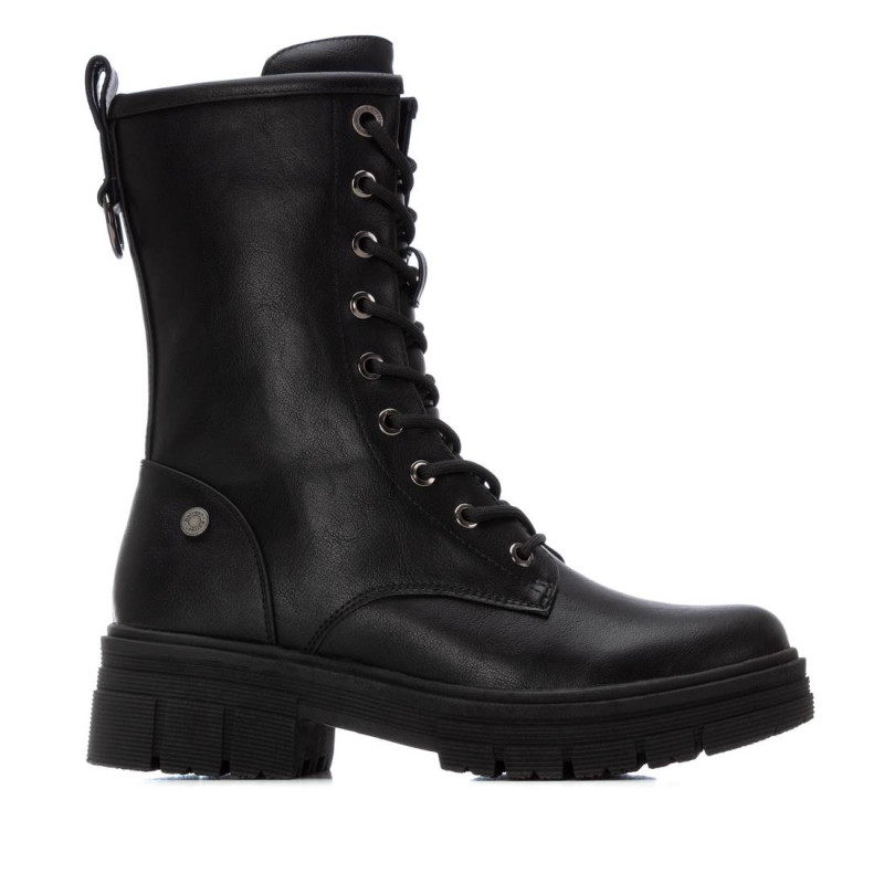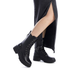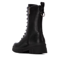 Botín de mujer, de la marca Refresh. Fabricado en material que imita a la piel. Cierre mediante cremallera interior. Tirador trasero para facilitar la puesta. Cordones regulables para un mejor ajuste. Altura de la caña de 19 cm. Suela volumen de goma antideslizante. Con plantilla extraíble. Un básico que no puede faltar entre tus favoritos de la temporada. Este modelo ha obtenido el certificado vegano por la organización mundial PETA (Organización de los derechos de los animales).