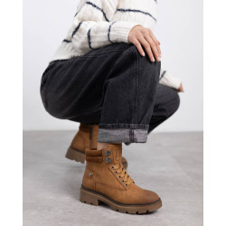 Botín de mujer, de la marca Refresh. Fabricado en material que imita a la piel. Cierre mediante cremallera interior. Cordones regulables para un mejor ajuste. Collarín acolchado. Suela volumen de goma antideslizante. Plantilla extraíble.