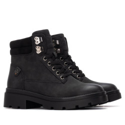 Botín de mujer, de la marca Refresh. Fabricado en material que imita a la piel. Cierre mediante cremallera interior. Cordones regulables para un mejor ajuste. Collarín acolchado. Suela volumen de goma antideslizante. Plantilla extraíble.