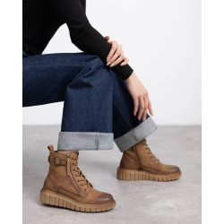Botín de mujer, de la marca Refresh. Fabricado en material que imita a la piel. Cierre mediante cremallera interna. Cordones regulables. Cremallera lateral decorativa. Tira con correa lateral decorativa. Tirador trasero para facilitar la puesta. Suela volumen rayada de goma antideslizante. Con plantilla extraíble. Este modelo ha obtenido el certificado vegano por la organización mundial PETA (Organización de los derechos de los animales).