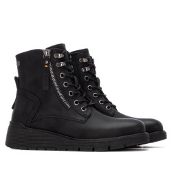Botín de mujer, de la marca Refresh. Fabricada en material que imita a la piel. Cierre mediante cremallera interior. Cordones regulables encerados. Cremallera lateral decorativa. Suela volumen en forma de cuña baja, ideal para completar los mejores looks del día a día. Con plantilla extraíble. Este modelo ha obtenido el certificado vegano por la organización mundial PETA (Organización de los derechos de los animales).