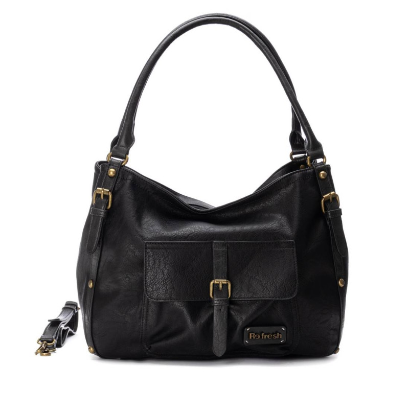 Bolso de mujer de la marca Refresh, fabricado en material que imita la piel con un acabado elegante y moderno. Diseñado para combinar estilo y funcionalidad, este bolso cuenta con cierre mediante cremallera que garantiza la seguridad de tus pertenencias. Su asa bandolera opcional ofrece versatilidad para llevarlo como prefieras, ya sea cruzado o al hombro. Además, dispone de varios bolsillos interiores que facilitan la organización, haciendo de este bolso el compañero perfecto para el día a día con un toque sofisticado. Medidas: 29 x 35 x 16 cm. Este modelo ha obtenido el certificado vegano por la organización mundial PETA (Organización de los derechos de los animales).