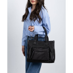 Bolso de mujer de la marca Refresh, fabricado en nylon resistente y ligero. Cuenta con cierre mediante cremallera y asa bandolera opcional para una mayor comodidad. Dispone de varios bolsillos interiores y exteriores que facilitan la organización, convirtiéndolo en un accesorio práctico y funcional para el día a día. Medidas: 39 x 35 x 13 cm. Este modelo ha obtenido el certificado vegano por la organización mundial PETA (Organización de los derechos de los animales).