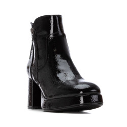 Botín de mujer, de la marca Xti. Fabricado en charol de alta calidad, con un acabado brillante que le da un toque de sofisticación y elegancia. Este modelo cuenta con una cremallera lateral que facilita el ajuste y el calce. Su tacón de 8 cm, acompañado de una plataforma, ofrece un estilo moderno y un confort excepcional al caminar. El diseño novedoso y vanguardista de este Botín lo convierte en una opción ideal para destacar en cualquier ocasión. Además, su suela antideslizante garantiza seguridad y estabilidad en cada paso. Un modelo que no puede faltar en tu armario. Plantilla extraíble. Este modelo ha obtenido el certificado vegano por la organización mundial PETA (Organización de los derechos de los animales).