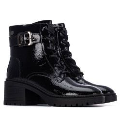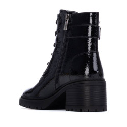 Botín de mujer estilo militar de la marca Xti, fabricado en material de charol, que le da un toque brillante y moderno. Con hebilla decorativa en el lateral. Cuenta con una cremallera interior para facilitar la puesta, brindando comodidad y rapidez al calzarse. Ideal para un look audaz y urbano con un toque de distinción. Plantilla extraíble. Este modelo ha obtenido el certificado vegano por la organización mundial PETA (Organización de los derechos de los animales).