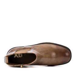 Botín de mujer, de la marca Xti. Fabricado en charol de alta calidad, con un diseño estilo Chelsea que combina elegancia y comodidad. Este modelo cuenta con un tacón ancho de 6 cm, ofreciendo una altura perfecta sin sacrificar confort. Su corte clásico y las gomas laterales hacen que sea fácil de poner y quitar, mientras que el acabado brillante del charol le da un toque sofisticado. Ideal para complementar cualquier look, desde los más casuales hasta los más formales. Además, su suela antideslizante asegura estabilidad y seguridad en cada paso. Plantilla extraíble. Este modelo ha obtenido el certificado vegano por la organización mundial PETA (Organización de los derechos de los animales).