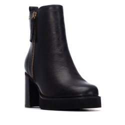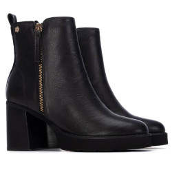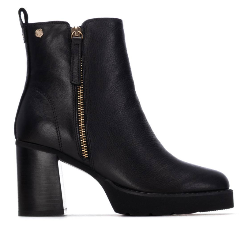 Botín de mujer, de la marca Carmela. Fabricada en material que imita la piel. Cierre mediante cremallera lateral. Tirador trasero para facilitar la puesta. Suela antideslizante y tacón alto. Un básico para el invierno. Plantilla extraíble.