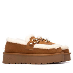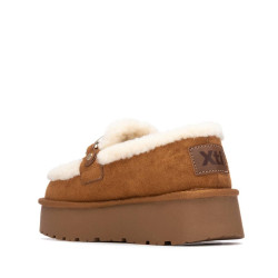 Zapato de mujer, de la marca Xti. Fabricada en suave antelina, con bordes en material textil estilo borrego que brindan suavidad y calidez. El diseño incluye un detalle metálico en el empeine, añadiendo un toque de elegancia. Suela plana antideslizante que ofrece máxima comodidad y versatilidad, ideal para un look casual y chic. Este modelo ha obtenido el certificado vegano por la organización mundial PETA (Organización de los derechos de los animales).