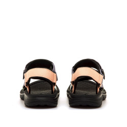Sandalia multicolor para mujer, modelo Solana de Mtng, de estilo outdoor. Incluye tiras ajustables de color lavanda, melocotón y verde menta, combinadas con una base negra que aporta contraste y un toque moderno. Su suela gruesa con relieve mejora la estabilidad, proporcionando mayor confort al caminar. El sistema de cierre con tiras adherentes permite un ajuste fácil y seguro adaptado a cada tipo de pie. Con certificado VEGANO sellado por INESCOP, el cual garantiza que la naturaleza química principal del material no se corresponde con fibras de origen animal. ¡Vive el verano con Solana de mtng!