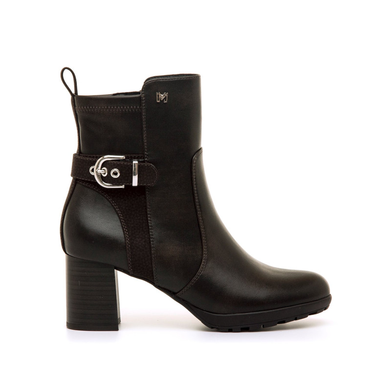 Botines de tacón de color moka para mujer de Mariamare, modelo Polino con diseño limpio y funcional. Incorpora un detalle de hebilla metálica en el lateral. La caña media y el tacón ancho ofrecen un buen equilibrio entre estilo y comodidad, ideal para el uso diario. El cierre lateral con cremallera permite un calce rápido y práctico. Su acabado ligeramente envejecido le da un toque más versátil, perfecto para combinar con jeans o prendas de estilo casual.
